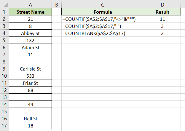 Excel Formula Countifs Blank Cells / Countif Function In Excel Easy Formulas : Imagine you have a whole bunch of.. Select a blank cell like g7 · type the formula: Or * character in the formula. Imagine you have a whole bunch of. Sep 10 '11 at 3: . To find the number of cells containing an actual question mark or asterisk, type a tilde (~) before the ?